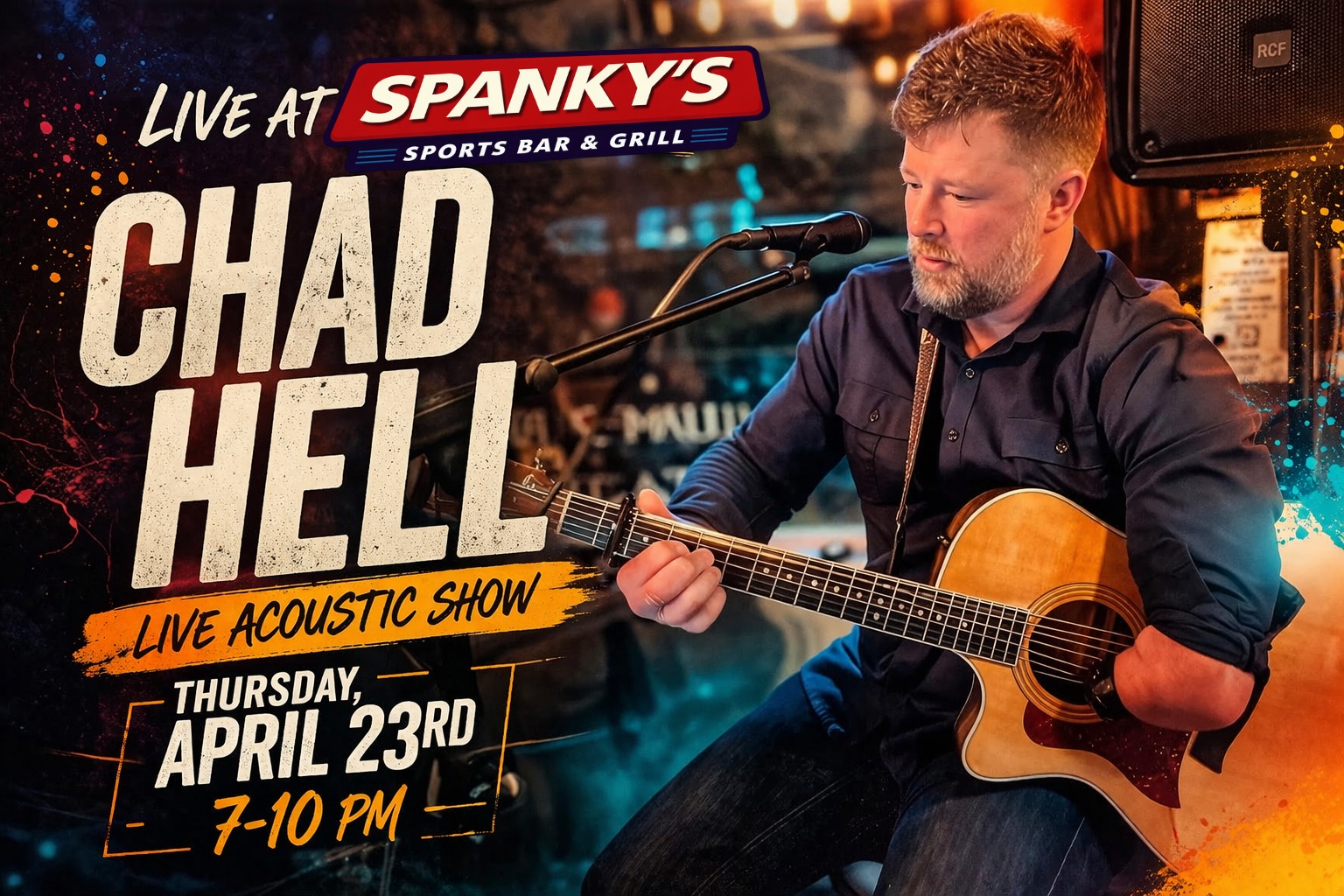 Join us at Spanky’s on Thursday, April 23rd for live music from Chad Hell from 7–10 PM. Grab some dinner, a few drinks, and enjoy a great night of live acoustic music. No cover!