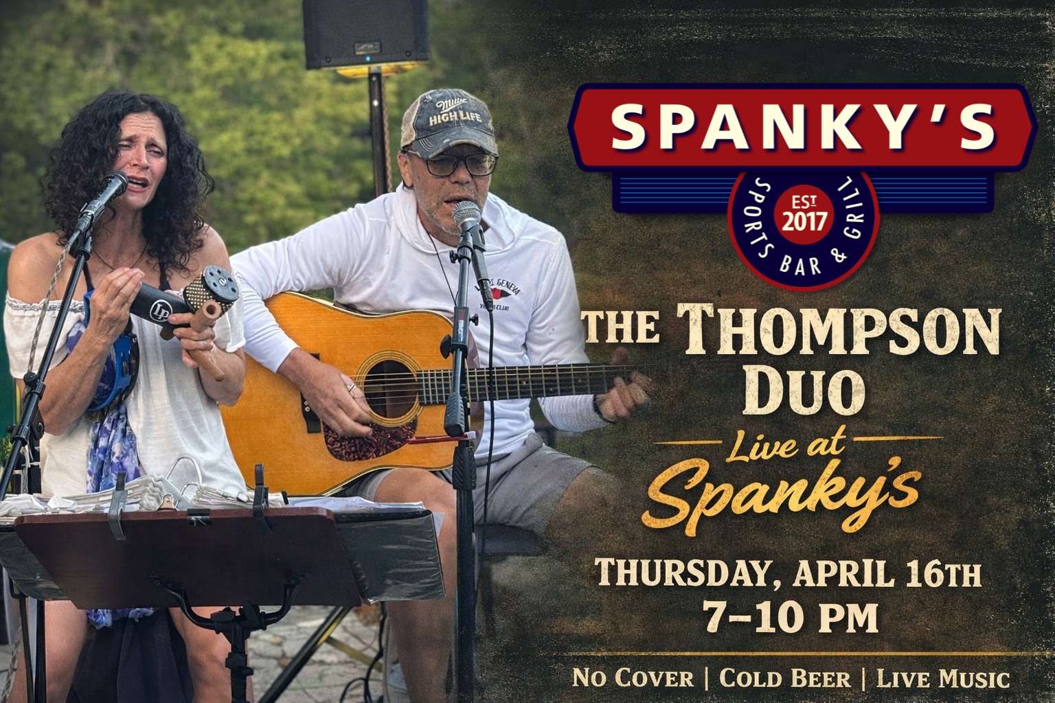 Two of our favorites, Melanie and Bill Thompson, take the Spanky’s stage on Thursday, April 16th! The Thompson Duo always brings a great time when they jam out at Spanky’s. Mark your calendars!